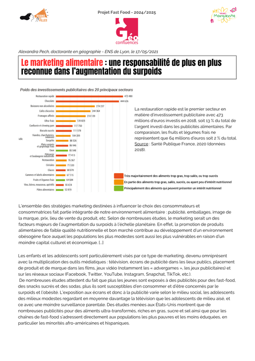 [SÉANCE 1] Article Géoconfluences, 2021 - Responsabilité du marketing alimentaire