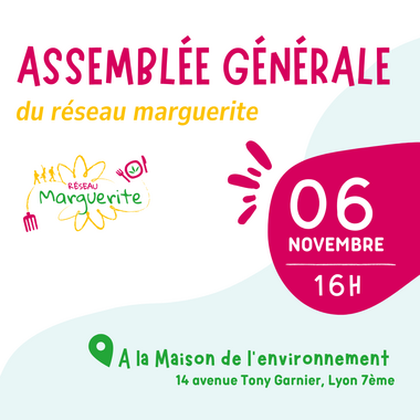 L’assemblée générale du Réseau Marguerite s’est tenu le mercredi 6 novembre 2024 à 16h à la Maison de l’environnement de Lyon, 14 avenue Tony Garnier, Lyon 7ème.