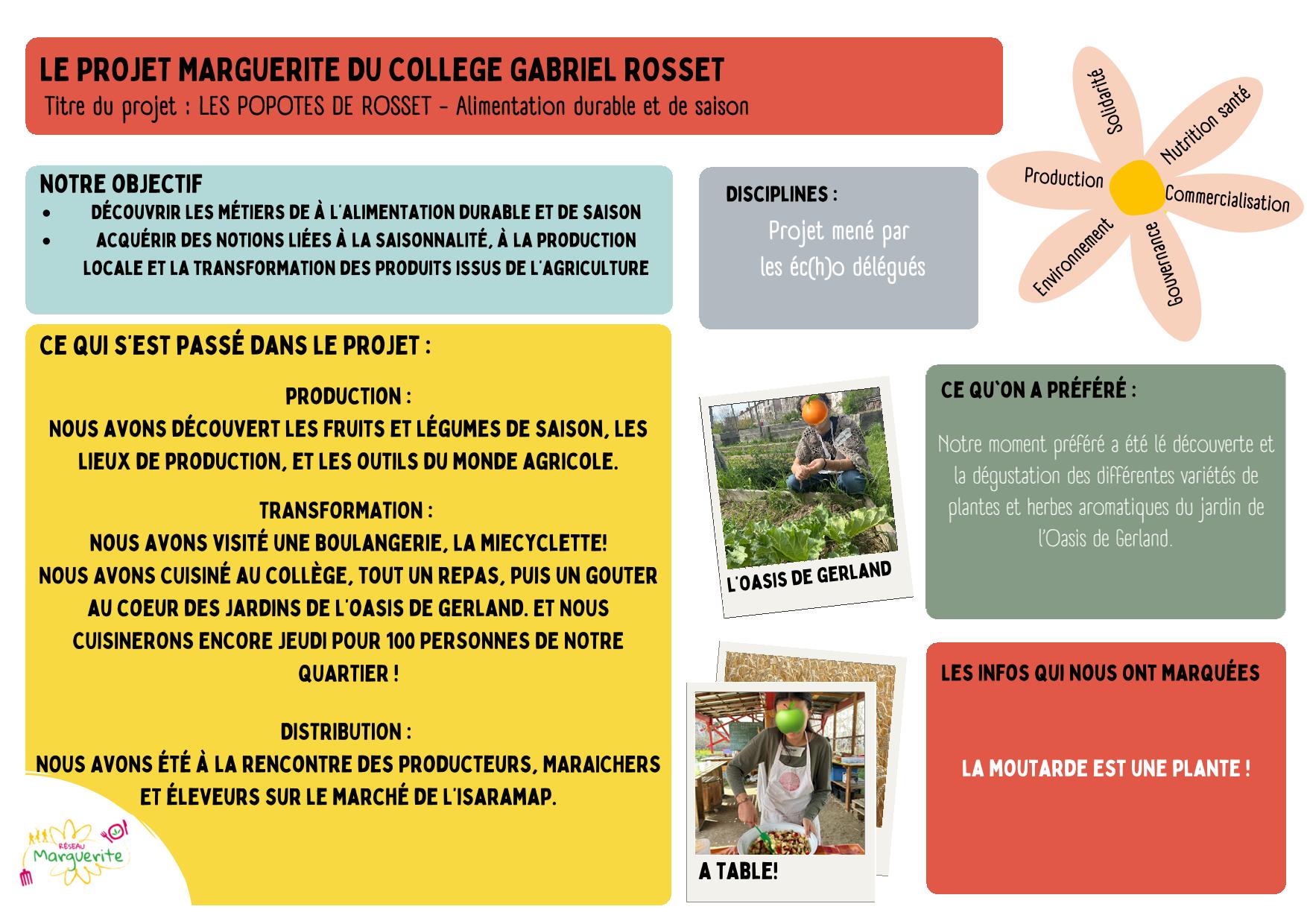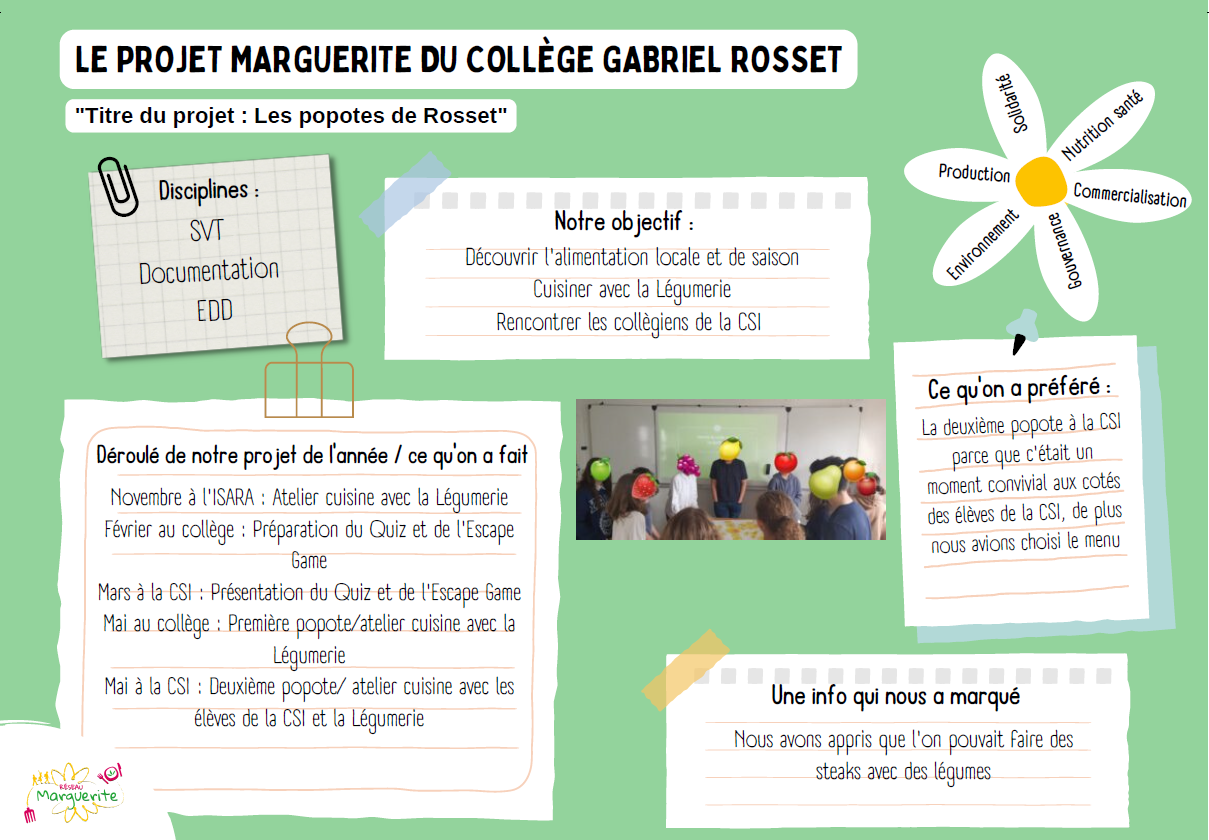 Pour l’année 2023/2024, les deux groupes d’écho-déléguées du collège Gabriel Rosset mènent des projets Marguerite !