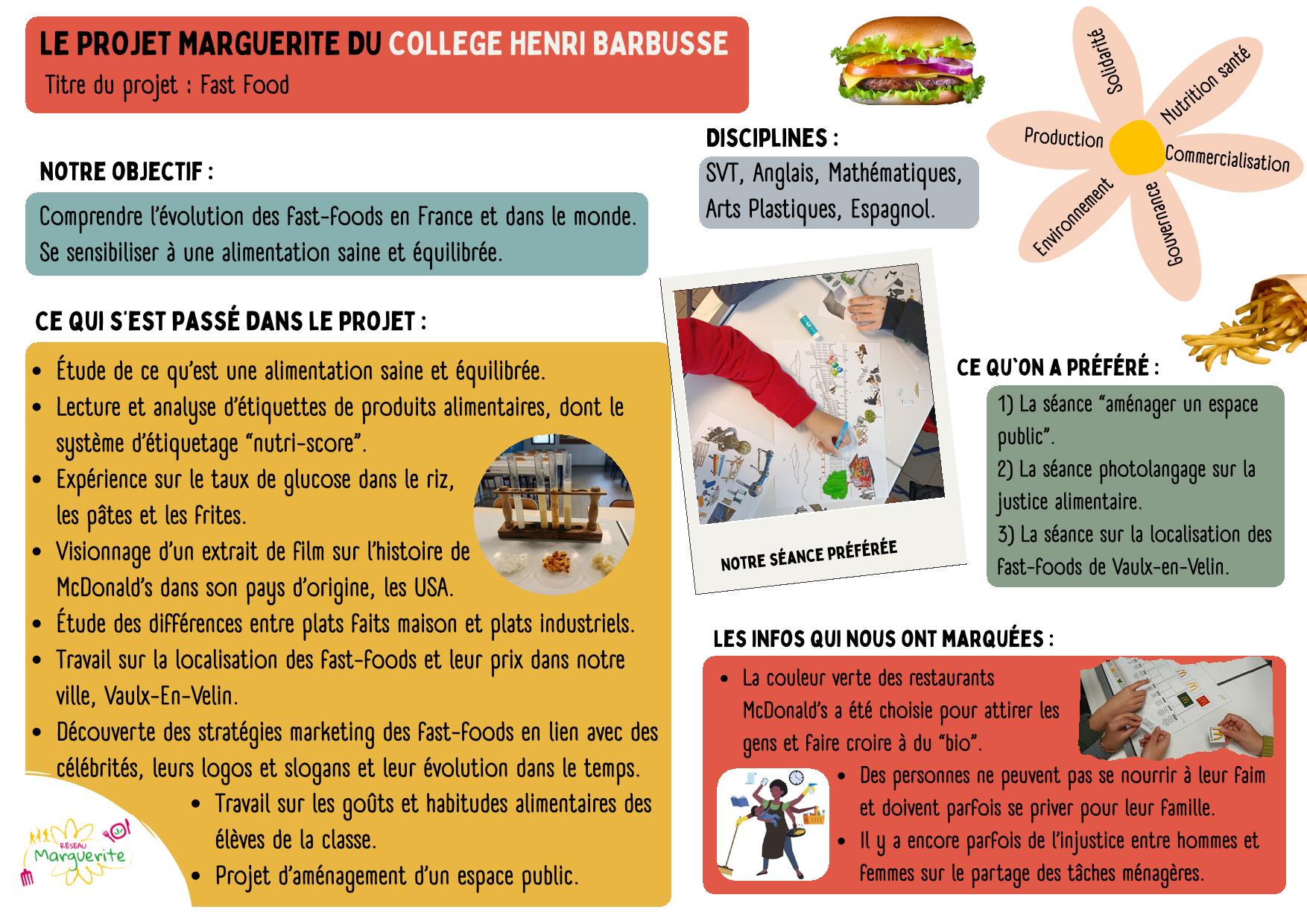 Les 5ème C ont suivi le nouveau projet Labo du Réseau Marguerite autour des fast-food.