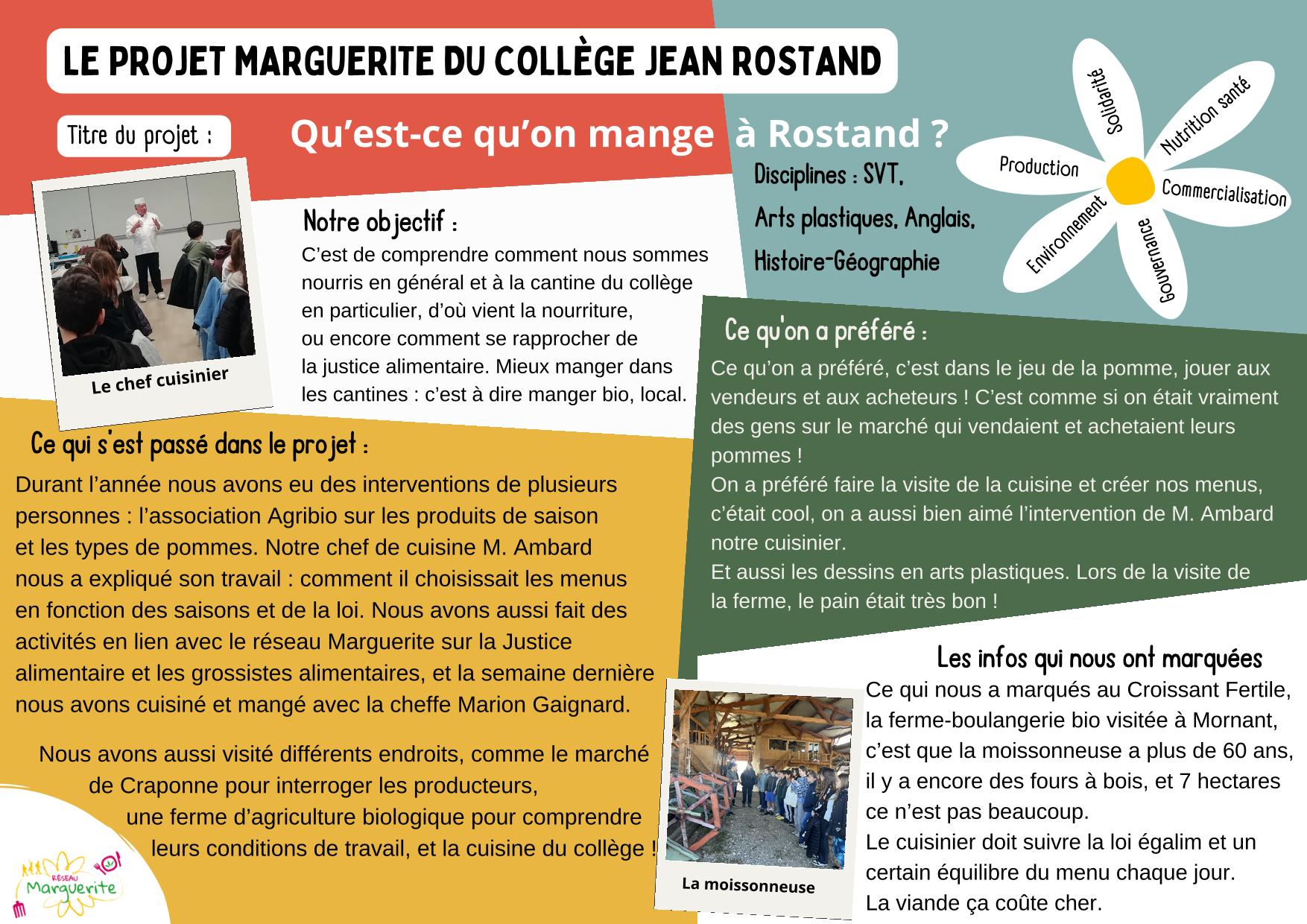 Les élèves de 5ème D du collège Jean Rostand ont réalisé cette année un projet Marguerite en SVT et Histoire -Géo.