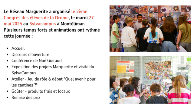 Retrouvez le journal du congrès des élèves pour découvrir cette journée de partage entre collégien·nes et lycéen·nes autour de l’alimentation et de l’agriculture (ci-contre)