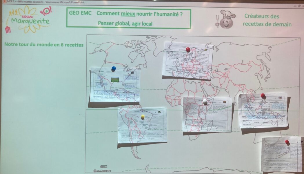 Les 5ème D présentent leur tour du monde en 6 recettes. Ils ont pu à travers des études de cas interroger la durabilité de l’agriculture d’un pays, ainsi que le kilomètre alimentaire et la saisonnalité de la recette symbolisant ce territoire.