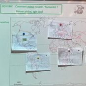 La mise en commun a été réalisée à l’oral, sur un planisphère, groupe par groupe. Voici quelques extraits vidéo à retrouver dans le lien suivant https://padlet.com/cecile_nicolas_lyon/6f6unzhj3o1c13ok