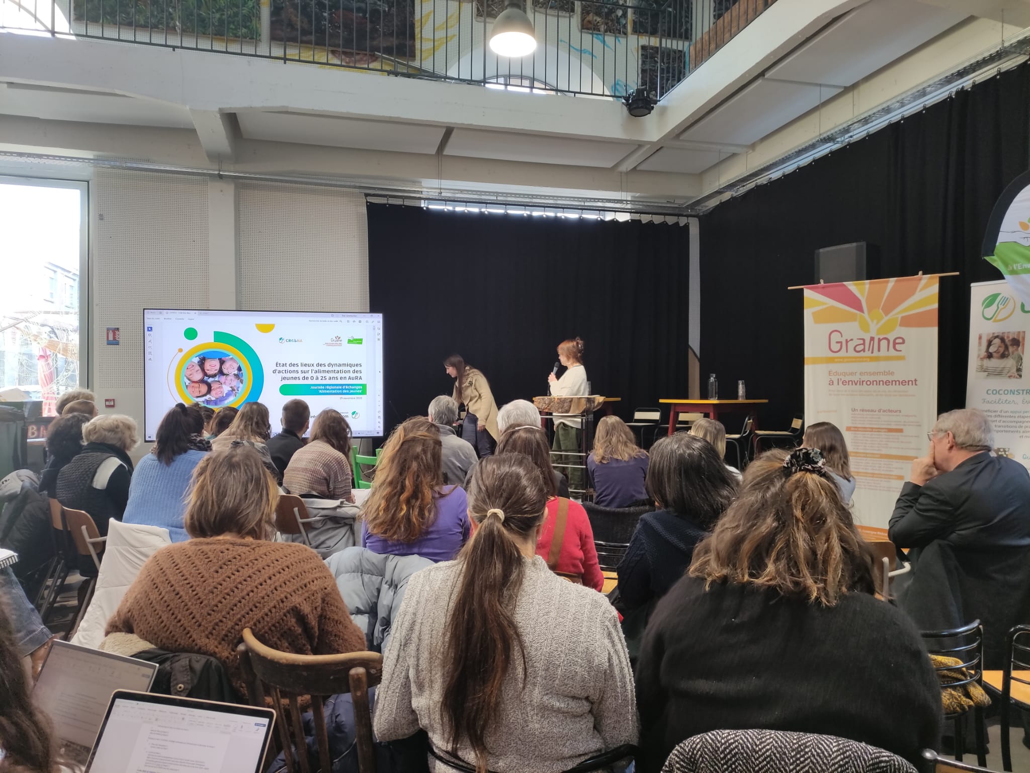 C’était aujourd’hui ! A Saint-Étienne, dans les locaux de la Fabuleuse Cantine (qui nous a bien régalé), le GRAINE AuRA, le Réseau d’éducation à l’environnement d’Auvergne (le REEA) et le CRESNA organisaient une journée régionale d’échanges autour de l’alimentation des jeunes et du changement de comportement.