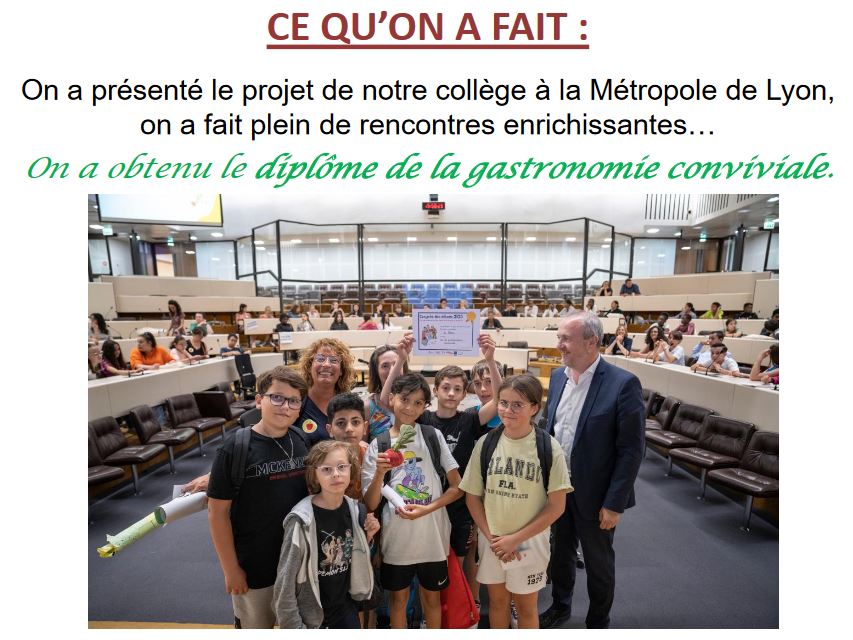 Merci aux cuisiniers du collège d’avoir ouvert leurs portes et d’avoir conseillé et accompagné les élèves dans la réalisation de leurs recettes.