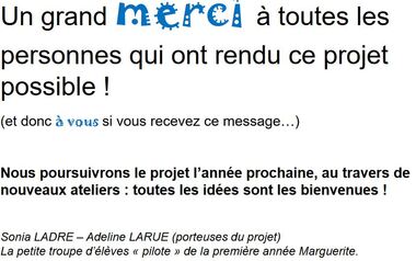 Merci aux élèves d’avoir mis leur enthousiasme au service de réalisations concrètes.