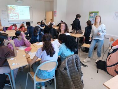 "Jeudi 25 janvier, les écho-délégués de 6e-5e ont parlé de gaspillage alimentaire et d’alimentation durable. Noélie et Émilie, deux étudiantes de l’ISARA, avaient conçu des jeux autour des fruits et légumes, de la saisonnalité, de la production locale, de la gestion des déchets alimentaires et de leur récupération. Les élèves ont élaboré des recettes à partir de ces activités afin d’offrir une dégustation au collège en février."