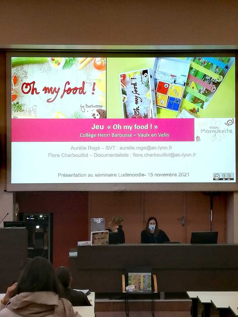 Les enseignantes du collège Henri Barbusse, Flore et Aurélie, y étaient invitées pour témoigner de leur propre retour d’expérience. Elles ont ainsi présenté le jeu "Oh My food !" : une mise en pratique concrète de la ludification dans le contexte de l’éducation agri-alimentaire.