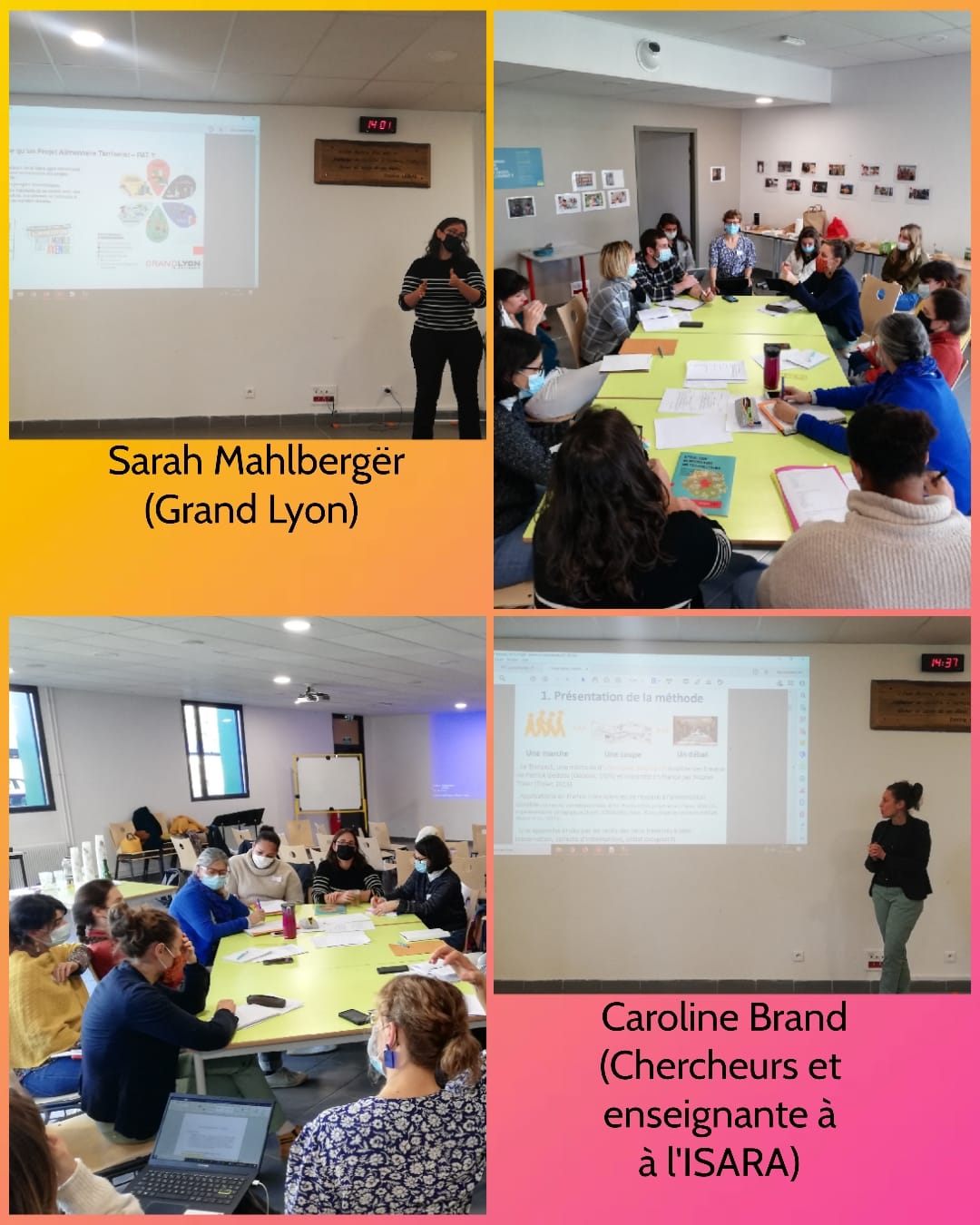 – un temps de présentation et de travail sur l’ancrage territorial des projets Marguerite, avec Sarah Muhlbergër, cheffe de projet PAT à la métropole de Lyon, Caroline Brand, enseignante chercheure géographe ISARA et Marie et Lélia, étudiantes de l’université de Clermont-Ferrand.