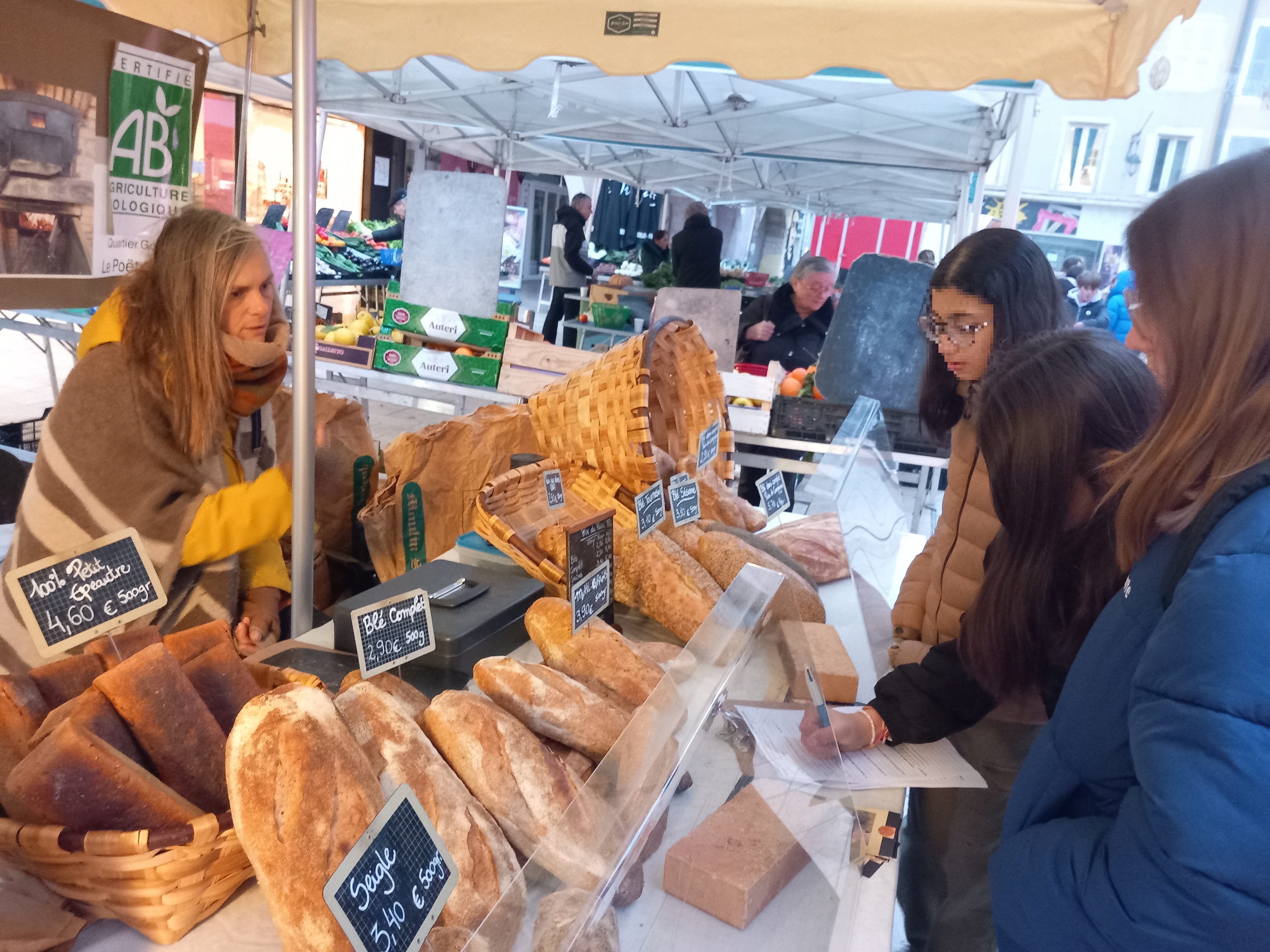 Les élèves avaient préparé en amont leurs questions, que leur enseignante a quelque peu enrichi afin de créer 3 catégories de question pour 3 types d’acteurs présents sur le marché :